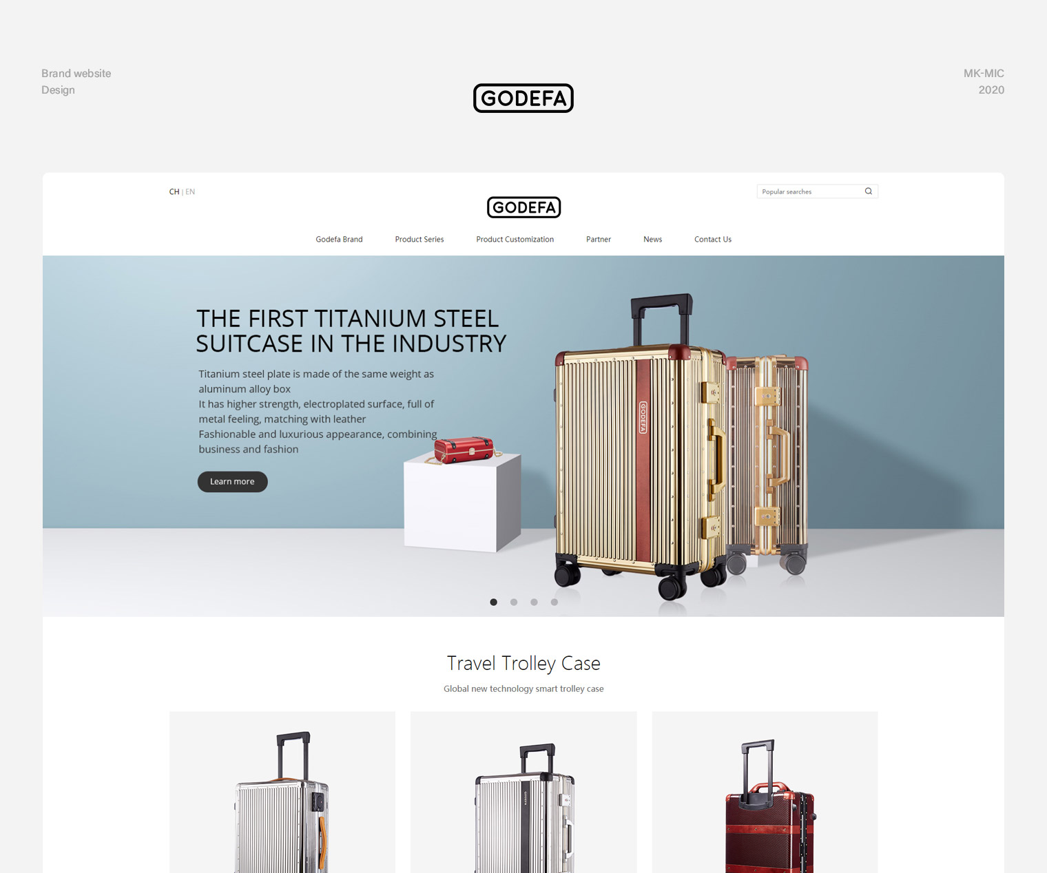 歌得芙品牌箱包网站建设,以产品定位“高端、简约”理念对整站进行创意设计,页面风格简洁融入奢饰品设计理念,产品封面采用角度切换的表现方式,产品详情面对每款产品的功能点及特色进行独立说明并配图,采用交互效果提升用户体验。